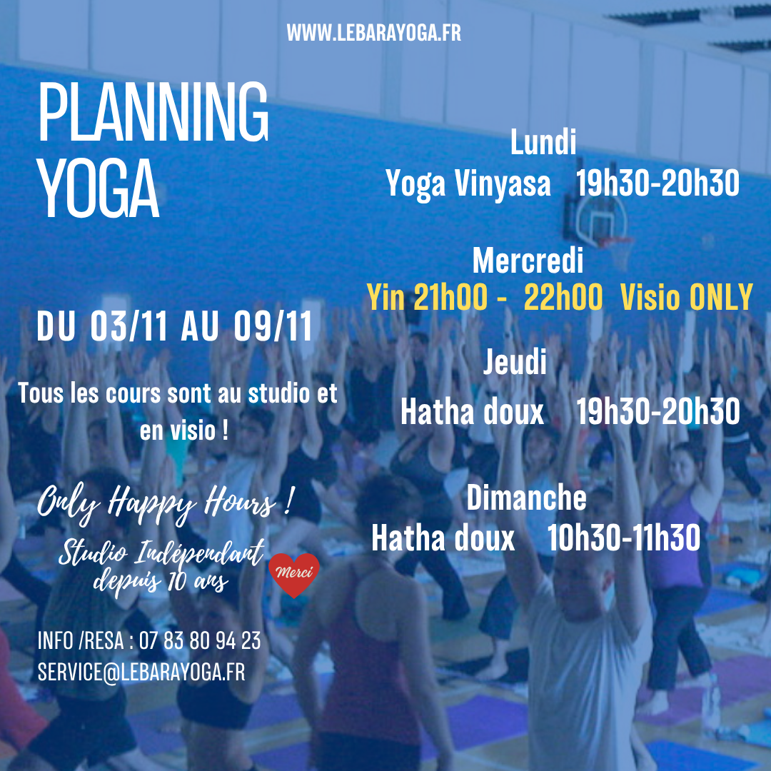 Carte de cours utilisable si vous envoyez un mail au moins 8 jours avant l’atelier ! Jeviens@lebarayoga.fr